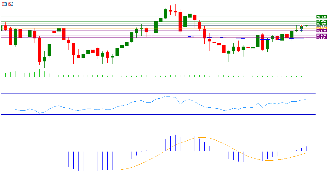If the pivot point of 86.53 for crude oil is broken, there is a possibility that it will target the support levels of 85.54, 83.60 and 82.61. If it exceeds the pivot point, it is likely to target the resistance levels 88.47, 89.46, and 91.40.