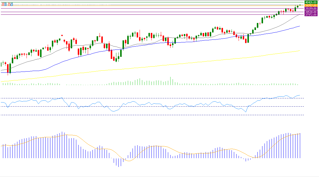 If the pivot point of 40,024 for the Dow is broken, there is a possibility that it will target the support levels 39,808, 38,441 and 39,225. If it exceeds the pivot point, it is likely to target the resistance levels 40,391, 40,607, and 40,974.