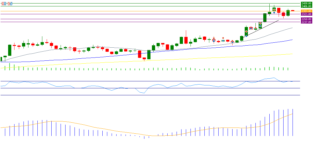 If the pivot point of 2353 is broken for gold, there is a possibility that it will target the support levels 2321, 2268, and 2237. But if it exceeds the pivot point, it is likely to target the resistance levels 2406, 2438, and 2491.