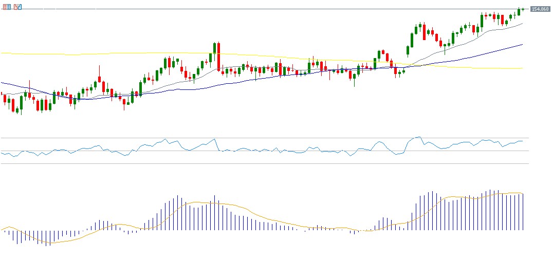 If the pivot point at 154. 63 is broken, the pair may target support levels at 154.20, 153.62, and 153.19. Conversely, if it rises above the pivot point, potential resistance levels are seen at 155.21, 155.64, and 1596.22. The Relative Strength Index (RSI) is currently at around 66, reflecting bullish momentum for the USD/JPY pair.