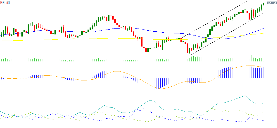 The Relative Strength Index (RSI), currently at 67, indicates positive momentum for the USD/CAD pair. The Positive Directional Indicator (DMI+) stands at around 26, while the Negative Directional Indicator (DMI-) is at approximately 8. The significant gap between these two indicators suggests strong buying pressure on the US dollar against the Canadian dollar. More importantly, the Average Directional Index (ADX) is at around 48, signaling that the upward momentum of this trend is strong.