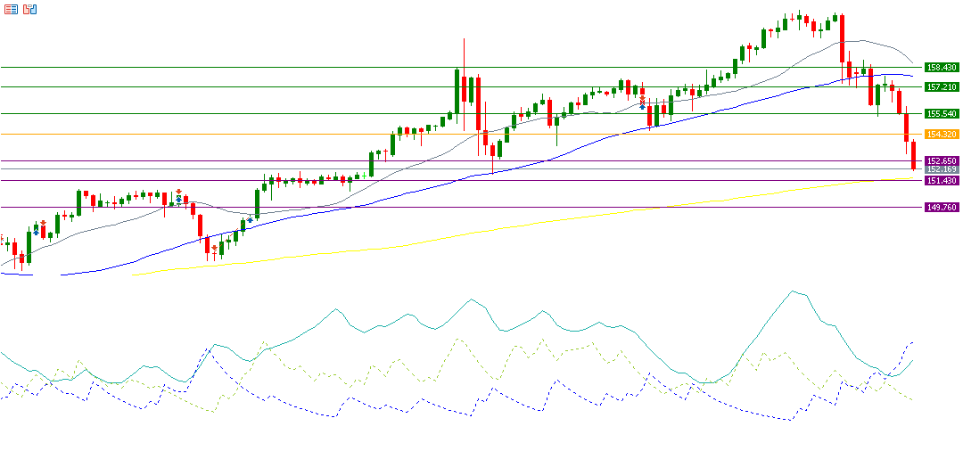 The USD/JPY price continues its downward trend for the fourth consecutive day, reaching 152.23 today, its lowest level since 3 May 2024. However, it remains up about 8% year-to-date. The key challenge lies in reaching the strategic support level of the 200-day moving average, which stands at 151.56.
