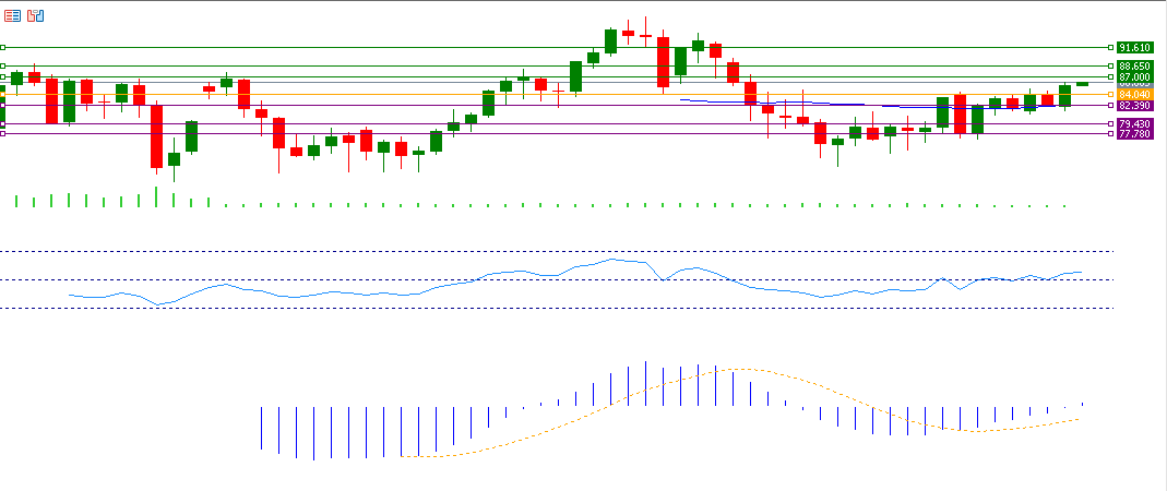 If the pivot point of 84.04 for crude oil is broken, there is a possibility that it will target the support levels of 82.39, 79.43 and 77.78. If it exceeds the pivot point, it is likely to target the resistance levels 87.00, 88.65, and 91.61.