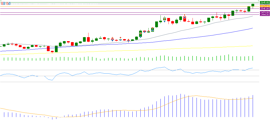 If the pivot point of 2579 for gold is broken, there is a possibility of targeting support levels at 2545, 2479, and 2444. If it exceeds the pivot point, it may target resistance levels at 2645, 2680, and 2745.