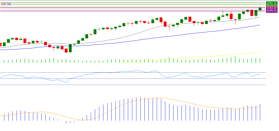If the pivot point of 42273 for the Dow is broken, there is a possibility of targeting support levels at 41964, 41485, and 41176. If it exceeds the pivot point, it may target resistance levels at 42752, 43061, and 43540.