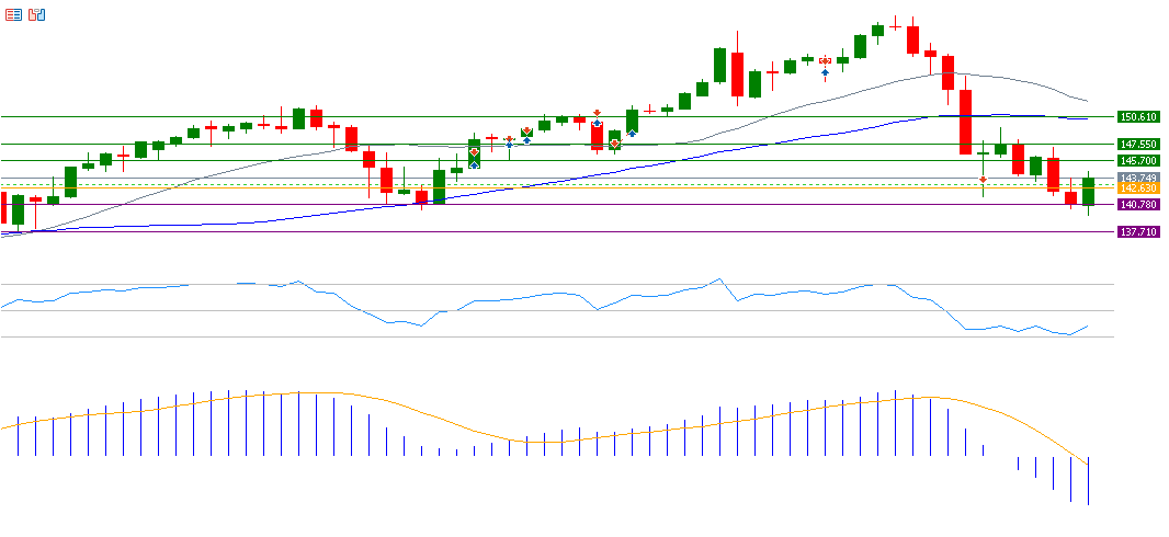 If the pivot point of 142.63 for the yen against the dollar is broken, there is a possibility of targeting support levels at 140.78, 137.71, and 135.86. If it exceeds the pivot point, it may target resistance levels at 145.70, 147.55, and 150.61.