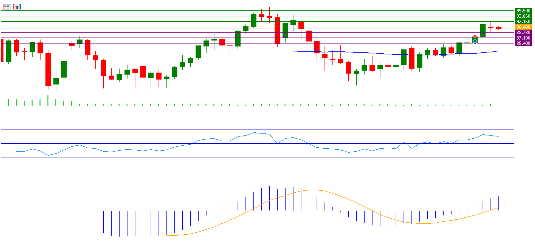 If the pivot point of 90.48 for crude oil is broken, there is a possibility that it will target the support levels of 88.78, 87.10 and 85.40. If it exceeds the pivot point, it is likely to target the resistance levels 92.16, 93.86, and 95.54.