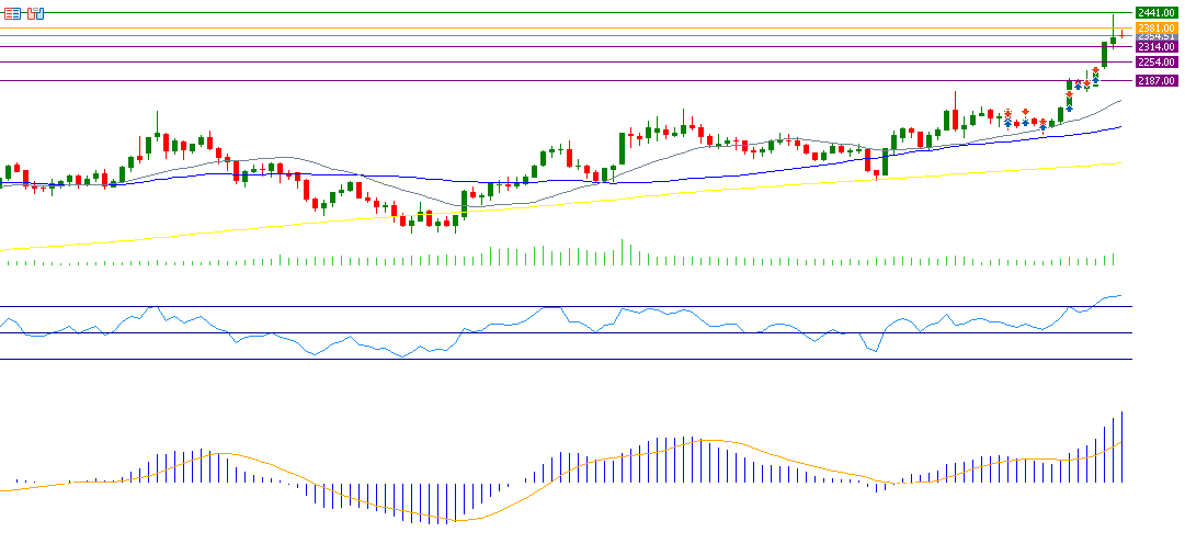 If the pivot point of 2381 is broken for gold, there is a possibility that it will target the support levels 2314, 2254, and 2187. But if it exceeds the pivot point, it is likely to target the resistance levels 2441, 2508, and 2568.