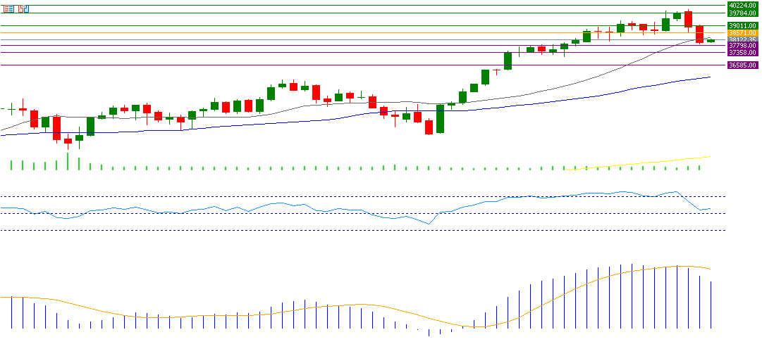 If the pivot point of 38,571 for the Dow is broken, there is a possibility that it will target the support levels 37,798, 37,358 and 36,585. If it exceeds the pivot point, it is likely to target the resistance levels 39,011, 39,784, and 40,224.
